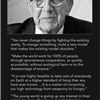 “To make the world work for 100 % of humanity in the shortest possible time through spontaneous cooperation without ecological offense or the disadvantage of anyone.”